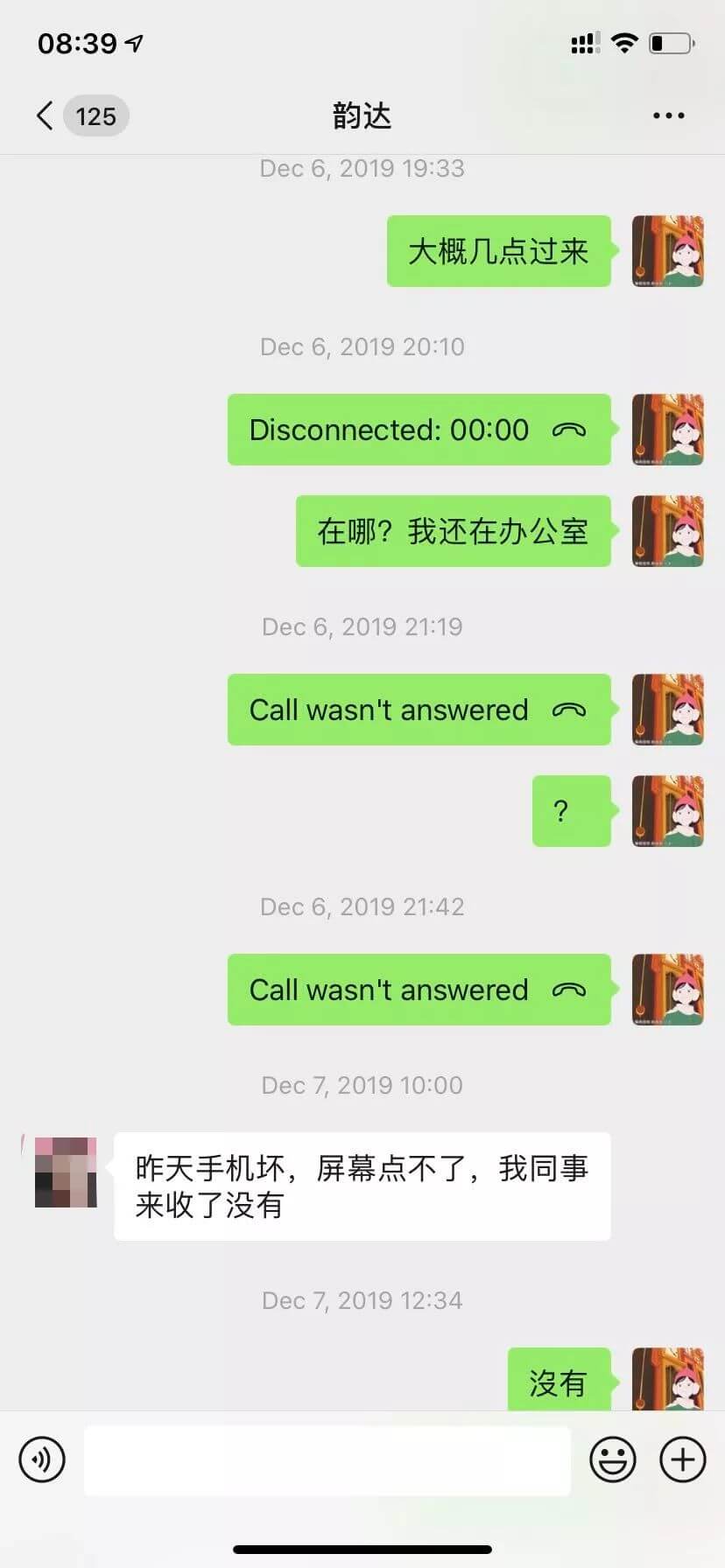 过了一段时间,又给我介绍了一个督导。我跟她正在聊天,刚约好了见面的时间与地点,但她突然发消息说,她现在在家,police来了,她要马上删除聊天记录。我将情况马上在工作群内汇报给领导。后面此人就消失了一段时间,出于保护机构的考虑,也没有再联系了。