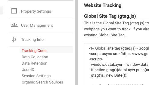 统计代码一般使用Google analytics,注册Google账户登录,添加网站,在admin菜单中获取统计代码。