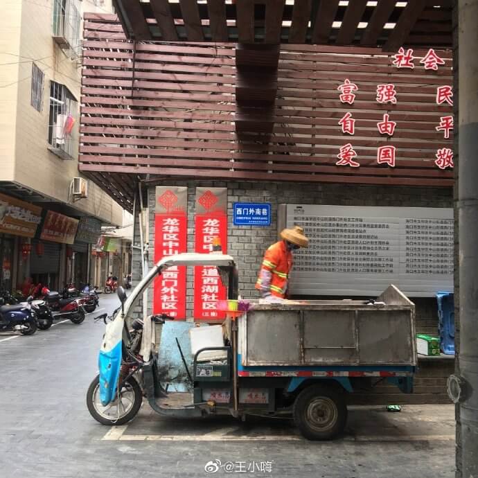 大概因为人力市场的原因,不仅这边的城中村设有检查点,这段三联路两端也设检查点,人员与车辆进出需出示通行证,没几个店家开张,格外冷清。一个环卫工大爷戴着脏脏的口罩坐在路边,功能机放出的音乐环绕四周,喧闹的音乐掩盖不了冷清。一问吓一跳,这环卫公司发的一次性口罩,五天才能供应一个。