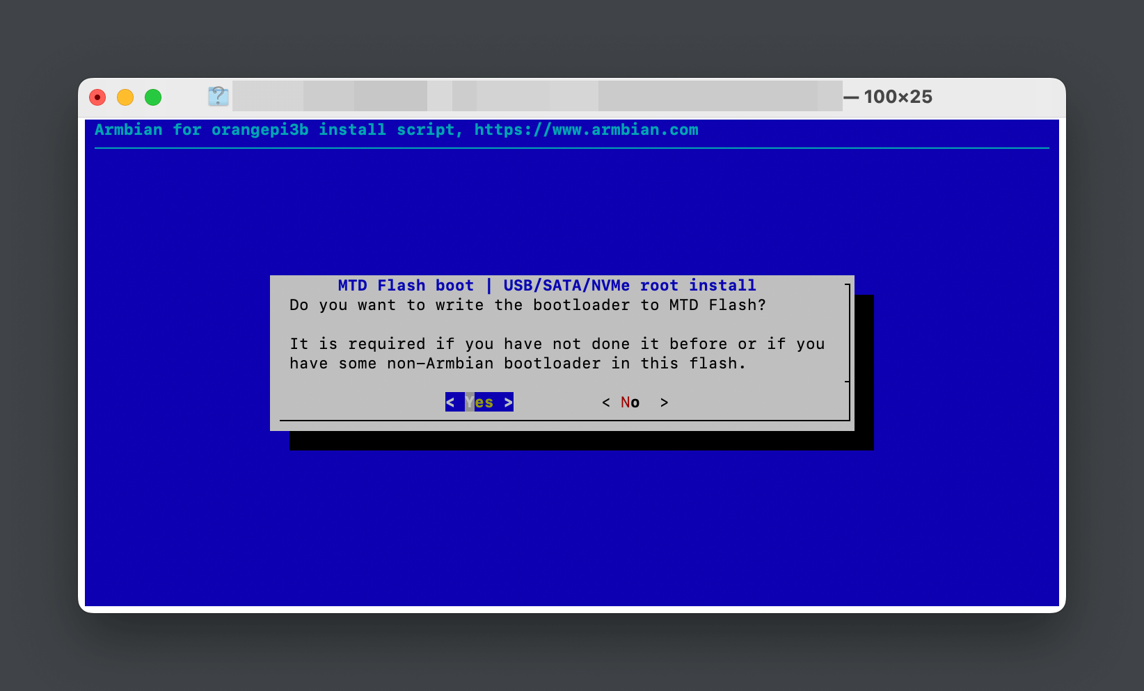 待進度格式化進度跑完後,選擇1選項。注意:香橙派的bootloader不支援btrfs格式的系統從NVMeSSD硬碟啟動,只能選擇ext4格式。
