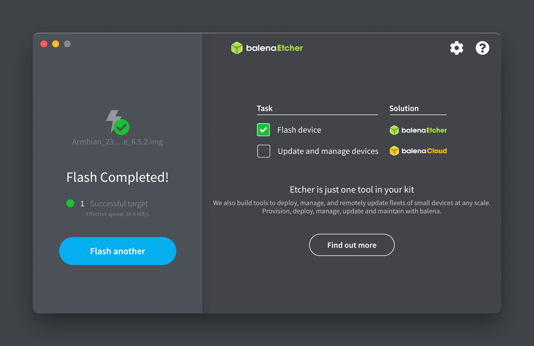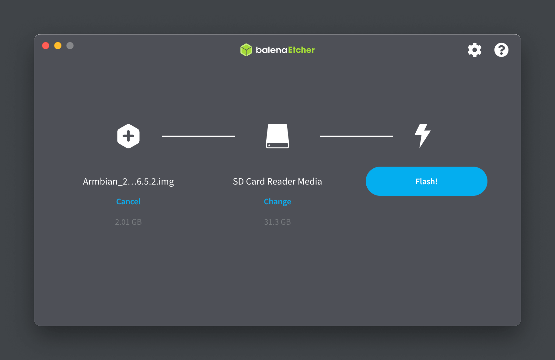 這裡,我採用armbian提供3B的社區維護版系統,SD卡的燒錄工具為balenaEtcher。下載好系統,安裝好燒錄工具即可開始作業。